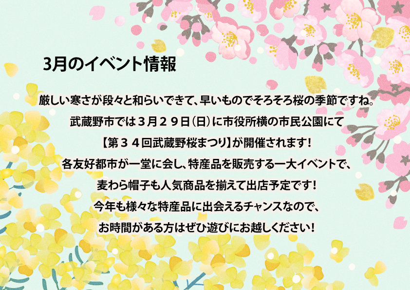 今月も東急百貨店吉祥寺店にて2月16日(金)・17日(土)・18日(日)の3日間出店予定です!